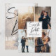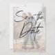 Take your 5 best images from your engagement photo session with 4 for the front and one for the back. It features a hand lettering design that says Save the Date.