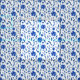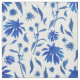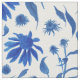 Modern Indigo Blue Cone Flowers on White Fabric
