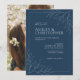 Modern Indigo Blue Foliage Outline Photo Wedding Invitation