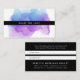 Encourage your customers and clients to share the love with these chic watercolor referral business cards. Front features a single line of custom text in white on a black stripe, on a watercolor paint blot backdrop in bright hues of violet purple and indigo blue. Add your contact information and referral terms to the reverse side using the template fields provided. Includes space for the referrer's and new customer's names.