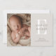 Modern Initial Neutral Baby Three Photo Birth Announcement shows your vertical photo on the front, along with baby's initial. Two more photos are on the back.