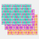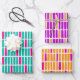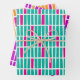 Modern and fun wrapping paper with vertical, irregular, rectangles in three vibrant colour options: 1. aquamarine blue and hot pink /magenta on white, 2. tangerine orange and hot pink / magenta on white, and 3. purple and a golden yellow orange on white. Great for birthdays or other celebratory occasions.