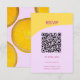 Your guests can easily scan the QR code to access your wedding website, where they can RSVP online in just a few clicks. This seamless process ensures you won't miss a single response, allowing you to focus on what really matters—celebrating your big day. Keep things simple and stylish with this modern solution for managing your guest list effortlessly. Featuring your details in a chic modern script, this card showcases a beautiful blend of pink and lavender that perfectly complements your wedding theme. On the reverse side, a vibrant lemon slice against a sunny yellow backdrop radiates the joy and warmth of an Italian summer, adding a playful yet sophisticated element to your wedding stationery.