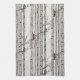 Modern Ivory Birch Trees and Red Cardinal Birds Tea Towel