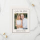 Introduce your wedding with this elegant photo save the date, designed with a soft ivory background for a warm and refined look. The design features “Save the Date” in black calligraphy at the top, with your vertical engagement photo centered to create a personal focal point. Your names, wedding date, and location are displayed below in clean, classic lettering, all framed by a thin black border for a timeless finish. This modern yet understated design is perfect for classic and contemporary weddings. The back is blank, allowing space for additional photos or wedding details.