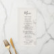 Flat Menu Card, Size: 10.2 cm x 23.5 cm / 4" x 9.25", Paper: Signature Matte