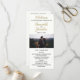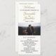Ornate calligraphy in gold script is a feature of this custom photo wedding program. Personal photo touch; easy to replace the template photo with yours, and relevant details for ceremony and wedding party. This is a re-worked design (as at Oct 16/2023) to allow maximum width on all text fields and to allow editing on all text fields.