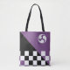 This purple tote gives off a classic Japanese festival feel with its traditional white chequerboard pattern and "mitsudomoe" three magatama crest! Great for hauling your stuff around at festivals. Open the customisation editor to change the background colour or add a name or text message!