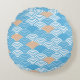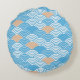 Modern Japanese Seigaiha Waves & Rising Sun Round Cushion