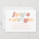 Modern Christmas party invitations featuring "Jingle & Mingle" in bold, overlapping typography for a fun, playful look. The hosts' names are in modern script lettering. The colour scheme is a bright, cheerful mix of pastel red, orange, yellow, and green. The back of the invitation features hand-drawn snowflakes against a festive red background. The wording is fully editable, so you can customise these invites for a White Elephant, Secret Santa, cookie swap, dinner party, or any other holiday-themed celebration. View the collection linked on this page for coordinating items or browse our store for more Christmas holiday party invitations.