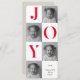 "Spread holiday cheer with this modern ‘JOY’ photo Christmas card, featuring bold red typography paired with black-and-white family photos. The clean collage layout and personalised message make it a stylish yet heartfelt way to share your love this season. Perfect for families, couples, and anyone wanting a festive holiday card with a modern twist."