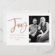 Modern Joy Script Rose Gold Photo Foil Holiday Card
