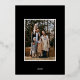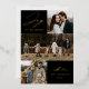 Modern holiday card featuring the phrase "Joy to the World" in elegant gold foil script with a black background. The front of the design features 3 of your favourite family photos arranged in a collage-style layout. Personalise the front of the multi-photo holiday card with your family name and the year. The card reverses to display an additional photo.