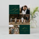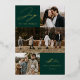 Modern holiday card featuring the phrase "Joy to the World" in elegant gold foil script with a spruce green background. The front of the design features 3 of your favourite family photos arranged in a collage-style layout. Personalise the front of the multi-photo holiday card with your family name and the year. The card reverses to display an additional photo.