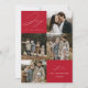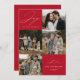 Modern holiday card featuring the phrase "Joy to the World" in elegant white script with a red background. The front of the design features 4 of your favourite family photos arranged in a collage-style layout. Personalise the front of the multi-photo holiday card with your family name and the year. The card reverses to display an additional photo.