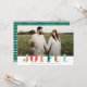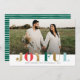 A modern holiday photo card featuring elegant gold letters alternating with festive jewel tones .