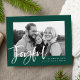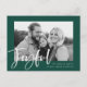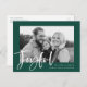 Wish friends and family a happy holiday with our Joyful Script holiday photo postcards. The modern holiday postcard features the word Joyful in a white, hand-lettered script overlay with your favourite photo framed in green. Personalise the postcard by adding your names, return address & a custom greeting.