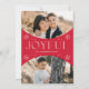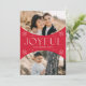Wish loved ones a happy holiday season by sending them a trendy holiday card designed by Late Bloom Paperie! The unique holiday card features two photos inside of a red oval arch photo frame. "Joyful" is displayed in white modern lettering accented by hand-drawn snowflakes. Personalise the front of the Christmas photo card by adding your name. The back of the multi-photo holiday card displays a red snowflake pattern.