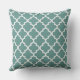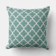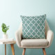 Modern square accent pillow features an elegant Moroccan quatrefoil pattern in juniper teal green and white colours. Note, the background colour can be modified to coordinate with your home decor.