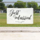 Modern Just Married Wedding Reception Banner is a simple boho black and white wedding party banner for your wedding reception party.