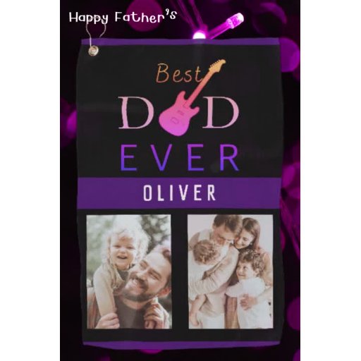 Simple cute and cool modern colourful design on black background for Father's Day "Best Dad Ever" with modern typography and a guitar for music lover heart in cool modern fashionable style for him. Perfect for Father's Day or Birthday.
