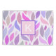 This cute and cheery kids colourful modern geometric pattern is sure to please with its cute design. The design features a white background with an adorable leaf-like pattern in pink, purple, and mauve and a monogram with a white and purple border. Perfect for a girls room or a baby nursery.