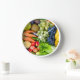 Food themed kitchen wall clocks with a graphic of fruits and vegetables in a colourful appetising looking wall decor clock perfect for hanging on the walls of your dining room or kitchen.