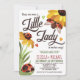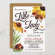 Modern Lady Bug Baby Shower Invitation - A little ladybug is on her way. Ladybugs have a reputation for being wise. Also if a ladybug follows you, it's meant to be very good luck. Presenting this very charming baby shower invitation featuring friendly lady bugs around sunflowers. One of them is spreading her wings with excitement! The back of the card features a faux Kraft cardboard texture covered with soft sunflowers. Create a massive buzz around your baby shower with this graceful invitation.
