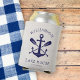 Modern Lake House Family Name Nautical | Navy Blue Can Cooler