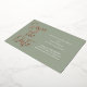 These save the date cards feature a modern, and elegant design on a sage green background. "Save the Date" is printed in gold foil, with a large font in a script, handwritten style. The wedding or event information is printed on the right.