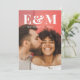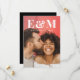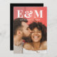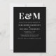 Modern save the date wedding announcement with your monogram initials in large bold white typography overlaying your photo. Customise your save the date details on the back in elegant simple white typography on a black background. If you need to darken the top portion of your photo for the white text to show, there is a dark gradient that you can turn on by editing in the design tool.