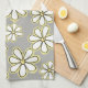 Modern large white and yellow daisy flowers on grey background | Kitchen Towel. Perfect way to brighten up the kitchen with this beautiful daisy patterned towel. Perfect for the summer vacation home too! Visit my store for other decor with this design from Jenn's Emporium.