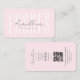 Modern Lashes Brows Makeup Artist Monogram Pink business card with QR code