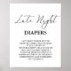 Modern Late Night Diaper Baby Shower Game Poster