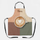 This personalised apron has a clean, top-down view of a mug filled with a meticulously crafted coffee beverage, featuring classic heart latte art in the foam.. The design is set against a modern, quartered background of warm, complementary colours. Ideal for baristas, coffee lovers, cafe owners, or anyone seeking stylish, contemporary kitchen and coffee station decor.