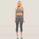These modern, trendy leggings features a white geometric lattice all-over design with a black background.