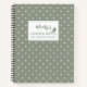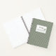 Modern stylish custom gardening journal with white leaf pattern on dusky green background. This easy to personalise spiral notebook features handwritten name and placeholders for your garden notebook text ideas, backside with bird logo and editable garden year. You can choose whether the inside pages should be white, lined or squared. You can collect all your garden ideas, notes about companion plants or plant wishes in it. This notebook is a smart gift idea for plant lovers, gardeners and green thumbs. Much joy with it and a successful gardening year © y.BEE PAPERIE