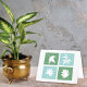 This modern greeting card, embellished with contemporary leaf silhouettes, adds a touch of elegance to your expressions of gratitude. The card's design, features harmonious shades of green and blue, evokes the serenity of nature and complements the botanical theme. Upon opening the card, a simple - Thank You! - message is inside.