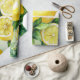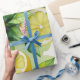 Modern lemon blue floral script bridal shower wrapping paper