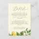 This modern lemon garden yellow details enclosure card is perfect for a spring or summer wedding. The rustic mediterranean design features bright and beautiful watercolor lemons with bohemian white flowers and elegant green leaves.