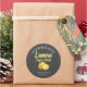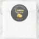 Modern Lemon Sugar Scrub Homemade DIY Labels are great for jars when displaying your product. Each round sticker is designed with grey customisable background. Change to any colour. "Homemade Lemon Sugar Scrub" is in white and yellow block lettering mixed with calligraphy script and an image of lemons. Easy template for your name or business name and ounces of weight.
