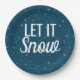 Modern and personalizable blue paper plates with white snowflakes for your Christmas parties.
