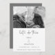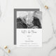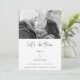 A modern back and white design with your photo at the top and informal set script Let's Do This below. Easily personalsie the rest of the text with your details.Choose one of your favourite photos of you both and replace the sample picture. You can either upload a picture already in black and white, or click customise further and then the Filter option to choose the black and white filter. You can also change the grey typography and grey background on the back to different colours if you wish via customise further.