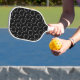 Up your game with this cool and stylish pickleball paddle. The word 'pickleball' in capital letters is curved round into a circle shape, and repeated as a pattern. One side of the paddle has white words on a black background, and the other side is black on white. The monochrome design gives the paddle a clean and trendy look, ideal for a game on top form with clarity and panache.