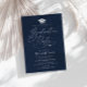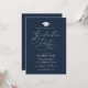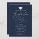 navy blue elegant white lettering script grad party invite. The text and colours can be edited.