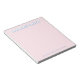 Notepad with your name in a bold white font with a light blue shadow on a pale pink background.