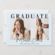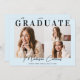 A modern light blue graduation party photo invitation. This minimalist grad party invite features a trendy script font and space to add 3 photos. THE SAMPLE PHOTO IS NOT INCLUDED. REPLACE WITH YOUR OWN PHOTO BEFORE ORDERING.