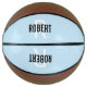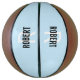 Modern basketball with a white monogram and a black typography name on a light blue background. Personalise name and initial.