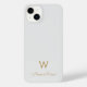 A modern, elegant monogram design with gold handwritten minimalist script typography and sans serif block typography on an elegant pale pastel Light Grey background. The monogram and name can be easily personalised.
