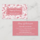 Add a feminine touch to your professional style with this modern girly pink and white floral wedding planner business card. Personalise by adding the name of the events coordinator and contact information to this pretty pink flowers design. All text in this business card template can be customised with your occupation or business of choice.